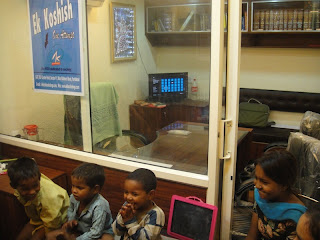 Otherwise, most of the children came dressed in better clothing, which was a nice surprise to see that they have some emotional support from their family to acquire education. When the children first arrived, I took some pictures of them with my camera, and then showed them the photos: Ajay erupted in laughter, his only reaction to seeing a photo of himself for the first time! Every photo we showed the children resulted in Ajay’s bursts of laughter, which rang like music to Mohini’s (his mother’s) ears. At the end of the day, we played for them a Wile E. Coyote and Road Runner cartoon, which they relished! They had never once seen a cartoon or computer in their lives, and it was a special moment for the Ek Koshish team and I to witness their bliss. I wish we could do more to give these children, and all children living in shambles, back their childhood, which too many of us take for granted!