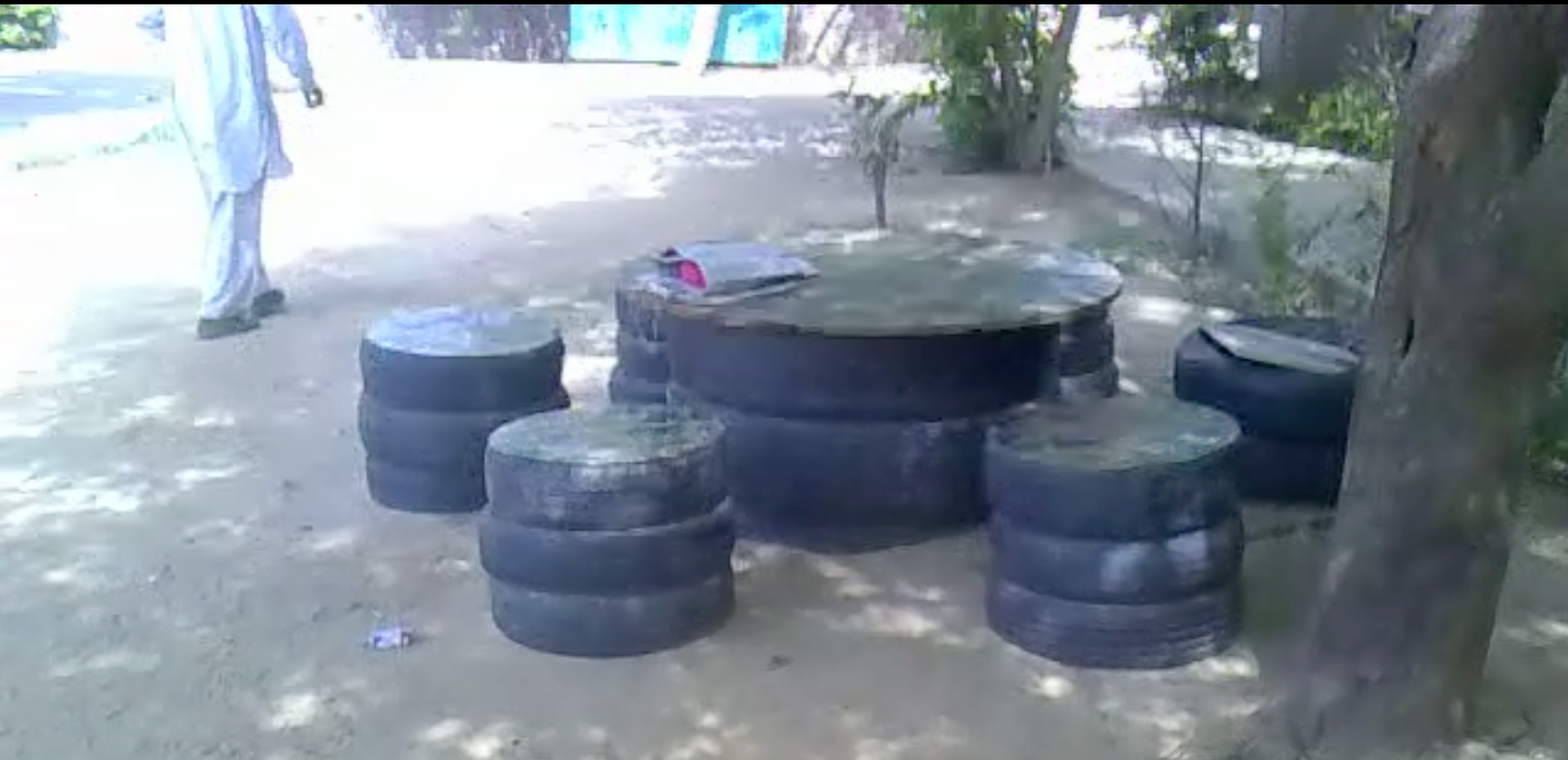 This morning, I went with the administrators of Ek Koshish to a small town in the village of Khedi, in Faridabad, where they support a self-sustainable orphanage. The orphanage has been running for over a decade, but since then they have been making a means for themselves by hiring women in the neighborhood to sew, stitch, and make all different arts and crafts made from 100% recycled materials: Once they sell their products, they can pay the women who fashioned these handbags, purses, wallets, and more, and also sustain the orphanage itself. They grow their own fruits and vegetables on the premises, and it is very safe inside for the 53 children living in the home. When I saw their goods for sale, I decided to purchase some of them, as they were very attractive, and I loved the idea of this self-sustaining orphanage. Finally, before reaching the orphanage, the directors of Ek Koshish and I thought it would be a good idea to bring some “Laddoos” (a famous Indian confection, a little smaller than an egg) for the children, which they all savored with joy. It was a real treat to see them smiling and enjoying our small treat for them. Here is an example of their unique approach to recycling goods, as we comfortably took a seat on these old tires, while we peacefully sipped chai with the orphanage coordinators. It was a very enjoyable day!